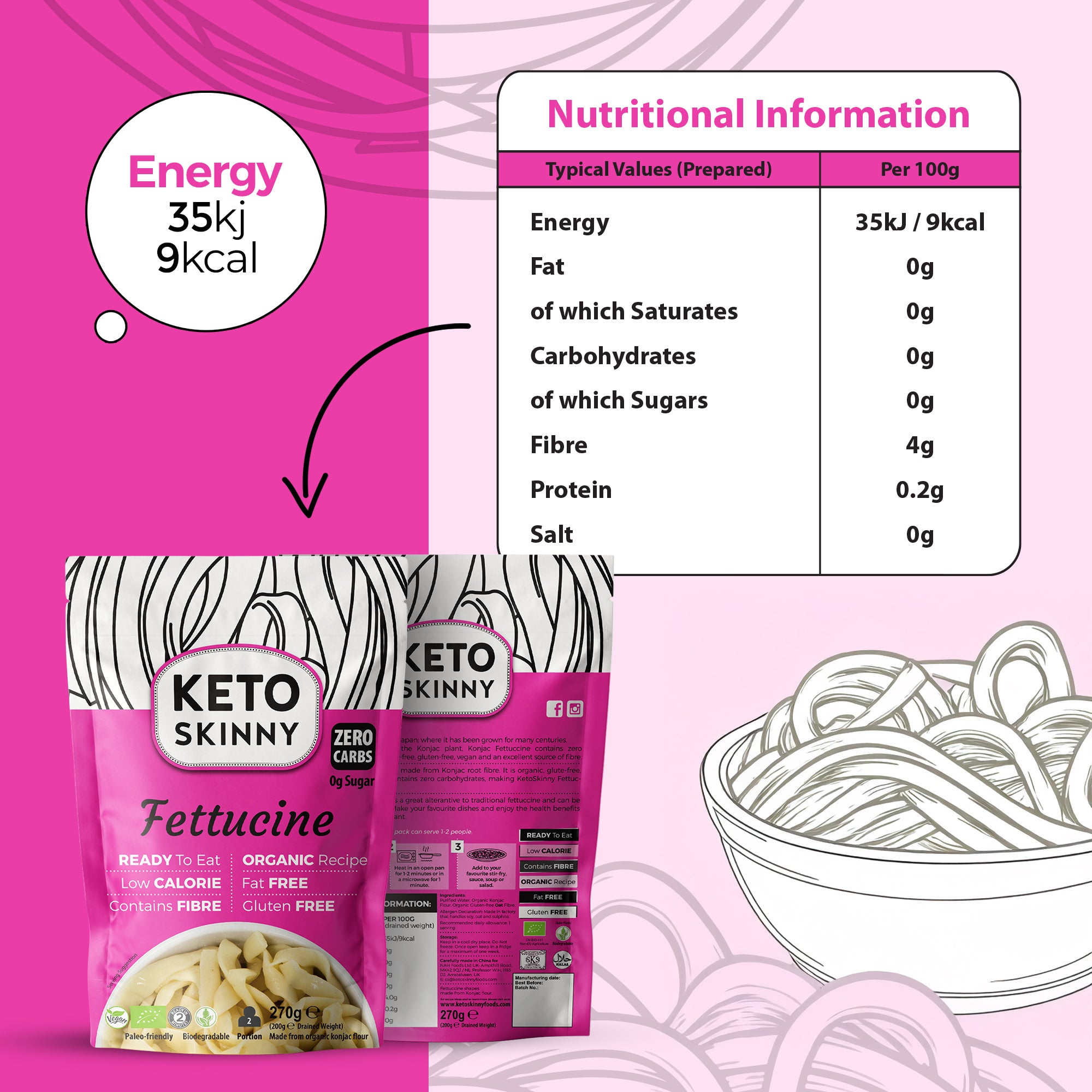 A delicious and healthy fettuccine alternative made from organic konjac flour. This low-calorie, zero-carb, and zero-sugar pasta is ideal for keto, paleo, and other low-carb diets. With its shirataki base, it offers a satisfying texture while being completely guilt-free.